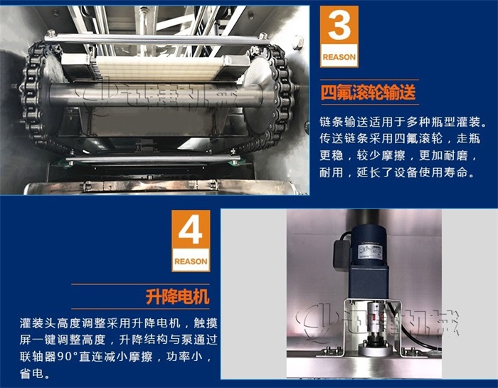 機適用于對流體5kg-30kg的計重量灌裝。自動完成計數(shù)進瓶、計重量灌裝、輸送出瓶等一系列操作。 特別適用于水劑、食用油,潤滑油的定量灌裝,是食品,醫(yī)藥,化妝品以及精細化工等行業(yè)的包裝機。本機采用可編程控制器(PLC)、高速工控組態(tài)軟件進行實時監(jiān)控的控制,使用調(diào)節(jié)方便。整機按GMP標(biāo)準(zhǔn)要求制作,各管路連接采用快裝方式,拆卸清洗方便,與物料接觸部位及外露部位均采用優(yōu)質(zhì)不銹鋼制造。整機安全、環(huán)保、安全、美觀、能適應(yīng)各種不同環(huán)境工作。